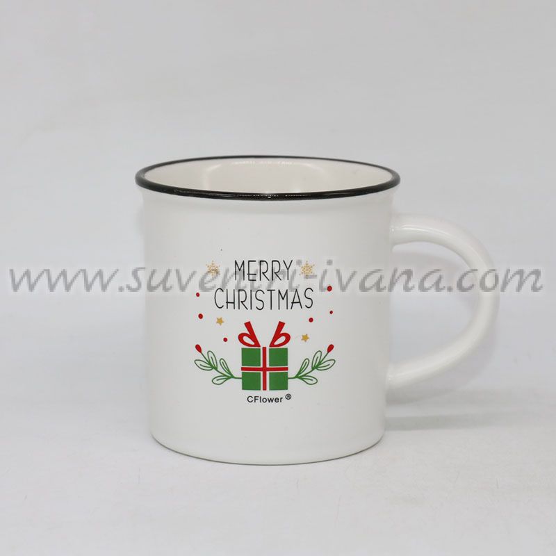 Керамична чаша с илюстрация коледен подарък и надпис "Merry Christmas" – идеална за коледна декорация за дома или офиса, както и за коледен подарък.