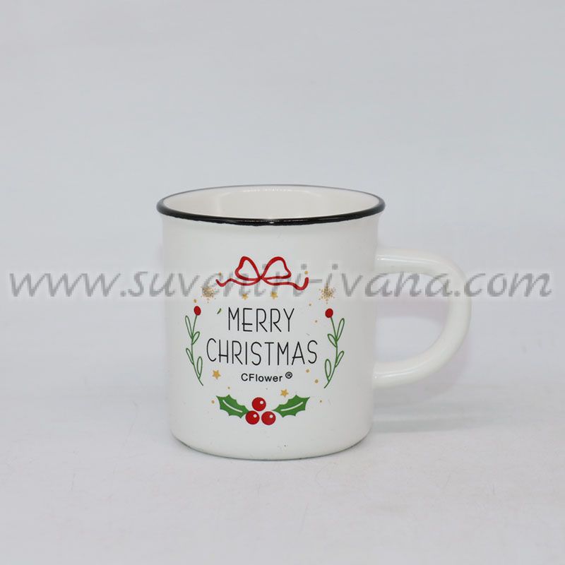 Малка керамична чашка с коледен дизайн и надпис "Merry Christmas" – идеална за коледна декорация за дома или офиса, както и за коледен подарък.
