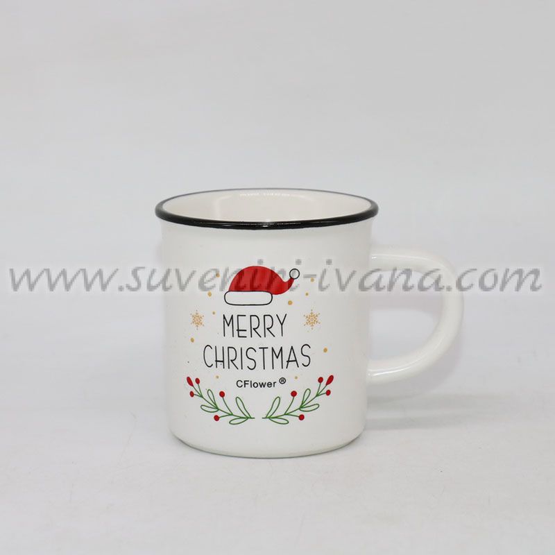 Малка керамична чашка с коледни мотиви и надпис "Merry Christmas" – идеална за коледна декорация за дома или офиса, както и за коледен подарък.