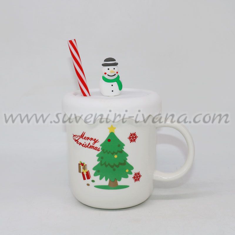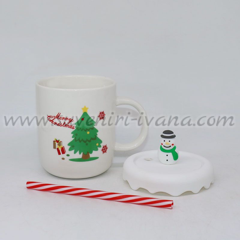 Внесете коледно настроение във всеки ден с тази красива чаша с празничен дизайн. Изработена от висококачествена керамика, чашата е декорирана с коледно дърво, снежинки и надпис Merry Christmas. В комплекта са включени удобен силиконов капак със снежен човек и сламка с дизайн на захарна пръчка.