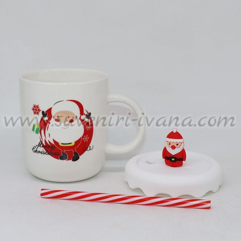 Внесете коледно настроение във всеки ден с тази красива чаша с празничен дизайн. Изработена от висококачествена керамика, чашата е декорирана с дядо Коледа, снежинки и надпис Merry Christmas. В комплекта са включени удобен силиконов капак с фигурка дядо Коледа и сламка с дизайн на захарна пръчка.