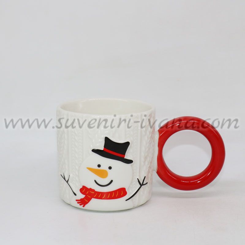 Коледната чаша със снежен човек с шапка е чудесен начин да внесете празнично настроение във всеки ден. Изработена от висококачествена керамика, тя е в класическо бяло с релефен десен и ярко червена дръжка с кръгла форма за удобен захват.