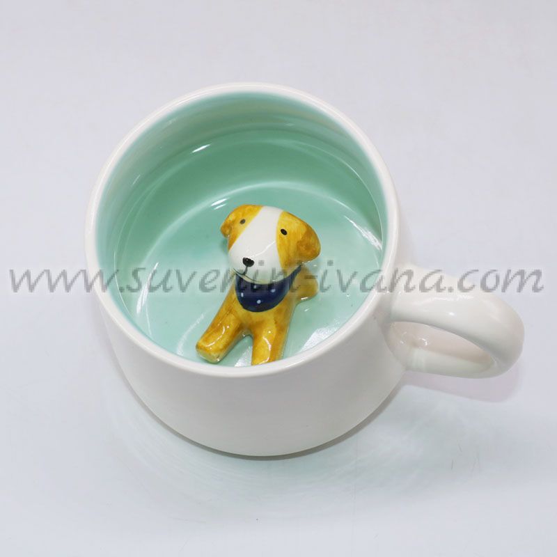 Керамична чаша с фигурка кученце на дъното. Чашата е подходяща както за пиене на чай, сок или други топли и студени напитки, така и за подарък за дете или възрастен.