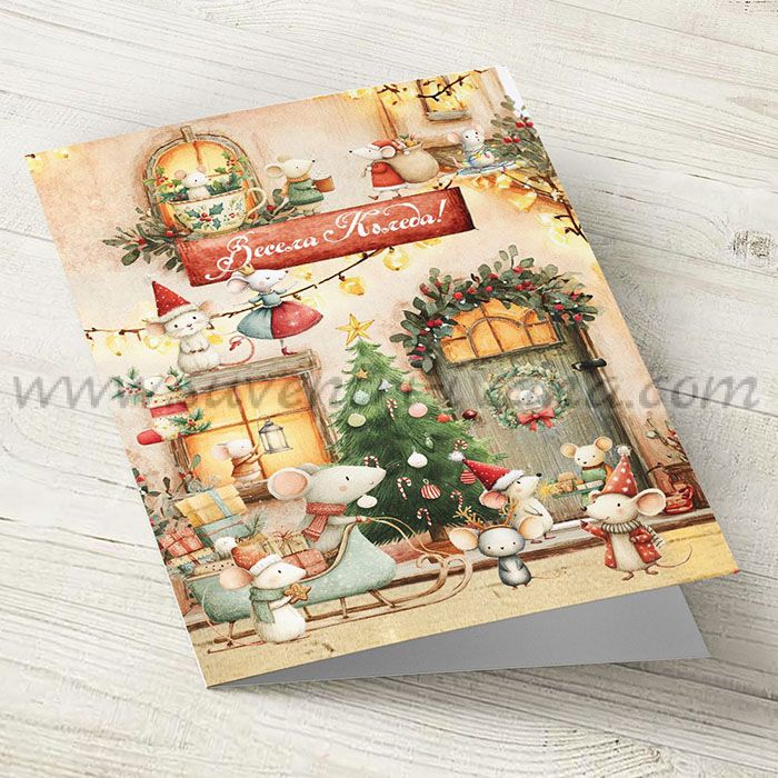 Поздравителна картичка „Миша Коледа“ ще внесе празничен дух и усмивки в дома на всеки, който я получи. Надписът „Весела Коледа“ придава още повече празничен дух.