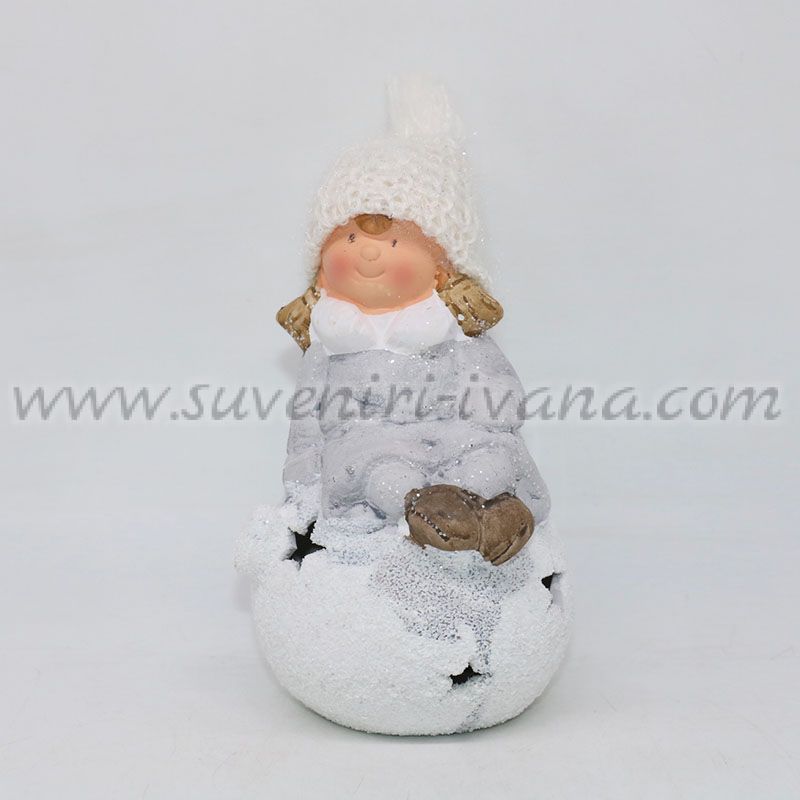 Керамична светеща фигурка на зимно дете, седящo върху снежна топка с LED осветление. Перфектна коледна декорация, която ще внесе уют и празнично настроение във всеки дом.