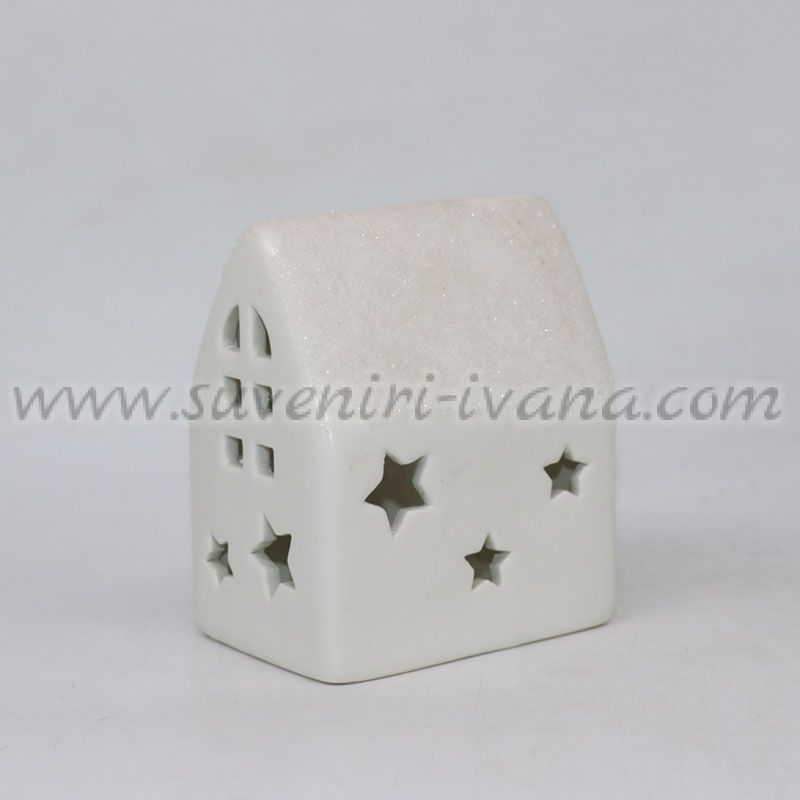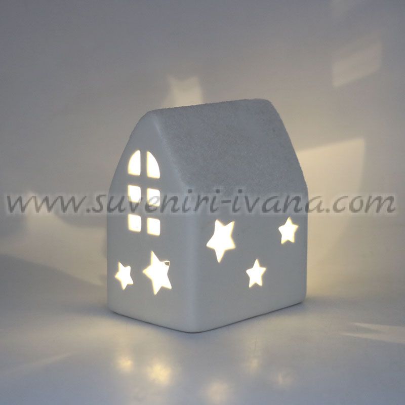 Тази красива керамична светеща къщичка е перфектно допълнение към всяка празнична декорация. С имитацията на заскрежен снежен покрив, множество прозорчета, здвездички и нежна топла светлина, тя създава уютна и приказна атмосфера у дома. Подходяща за оформление на коледно селище, рафт, камина или маса. Работи с LED светлина, която е безопасна и енергоспестяваща.