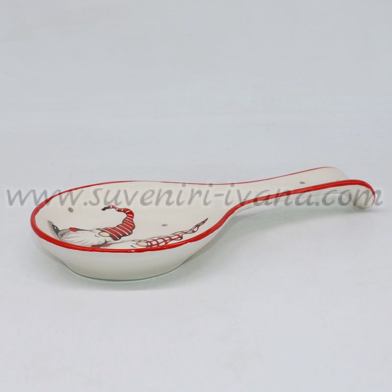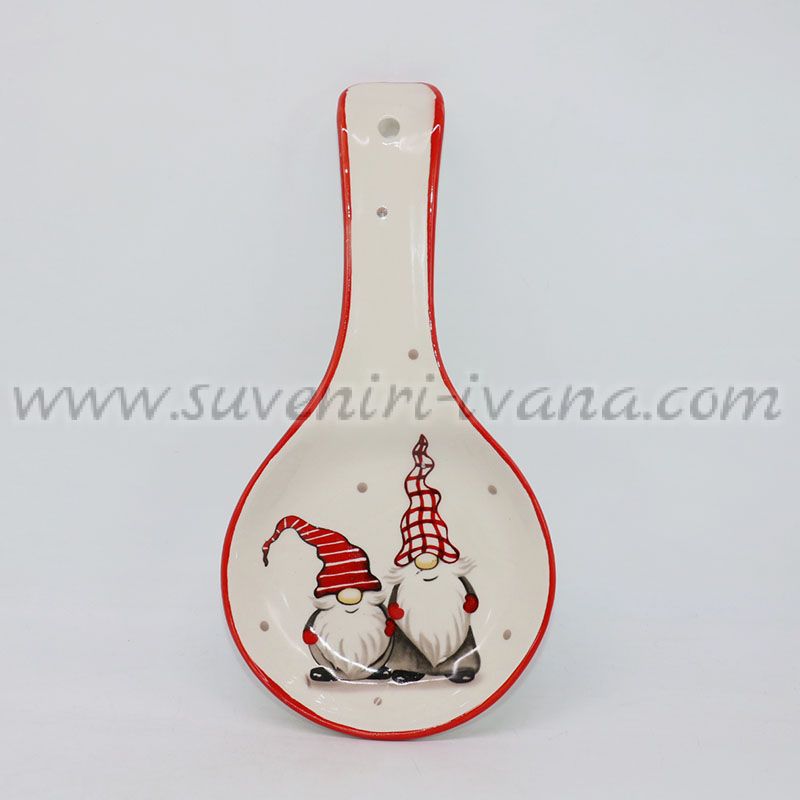 Тази керамична поставка лъжица съчетава функционалност и празнично настроение. Изработена е от здрава керамика и е украсена с красиви коледни гномчета в червено-бяла гама, която носи уют и настроение в кухнята. Перфектна е за поставяне на кухненски прибори по време на готвене, предпазвайки плота от замърсяване. Практична, декоративна и лесна за почистване – чудесен коледен акцент за всеки дом или като малък подарък.