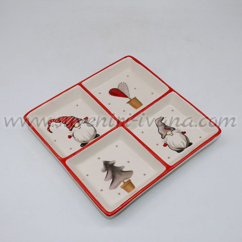 Коледно керамично плато с 4 отделения – гноми и коледни мотиви