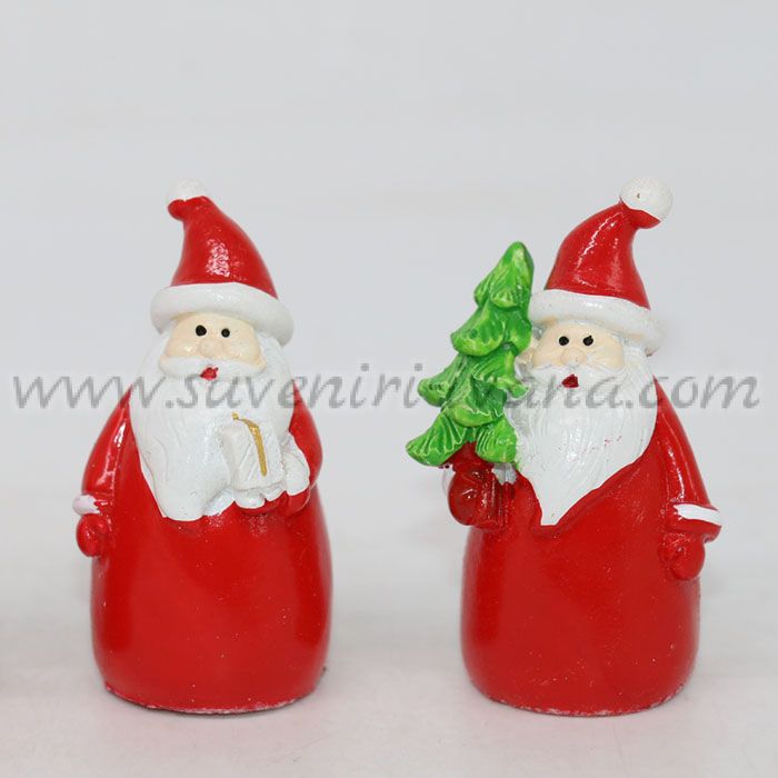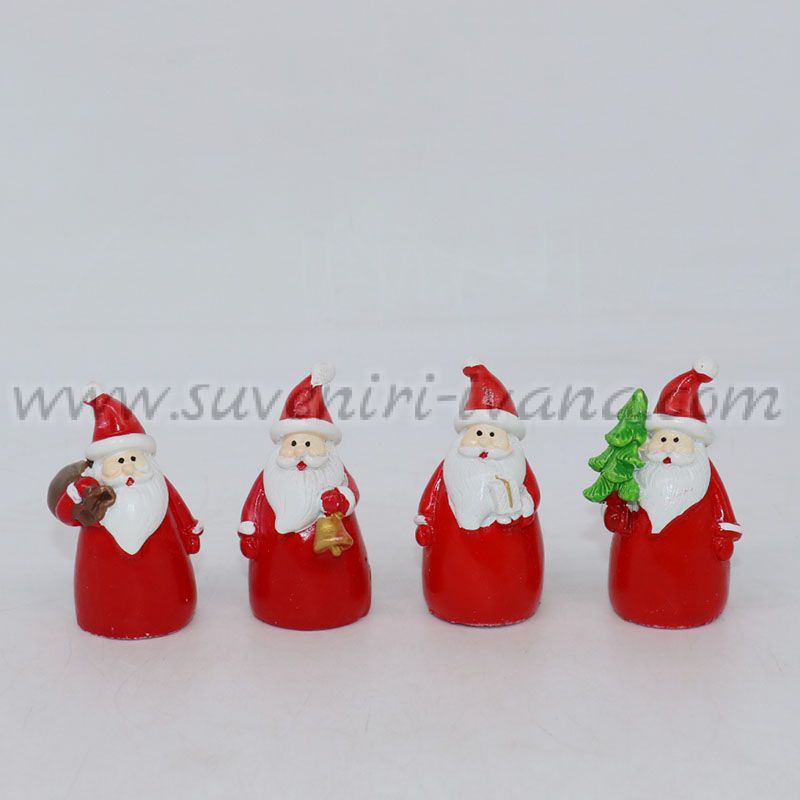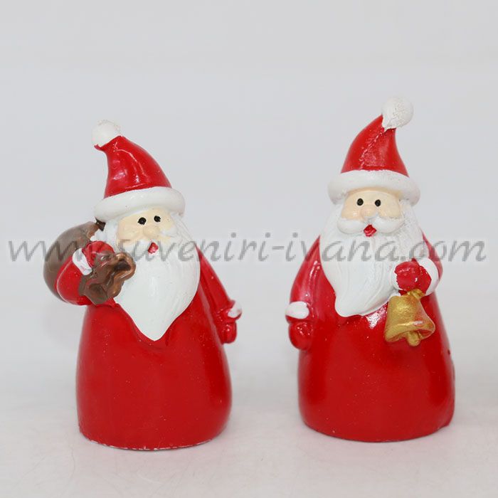 Тези коледни фигурки Дядо Коледа са чудесен акцент за коледния кът у дома, офис украса или част от празничната декорация по време на коледните празници. Изработени са от полирезин и се предлагат в четири варианта: Дядо Коледа с елха, Дядо Коледа с подарък, Дядо Коледа с камбанка и Дядо Коледа с чувал. Приблизителни размери на фигурките - височина 5,0 см, ширина 2,5 см.