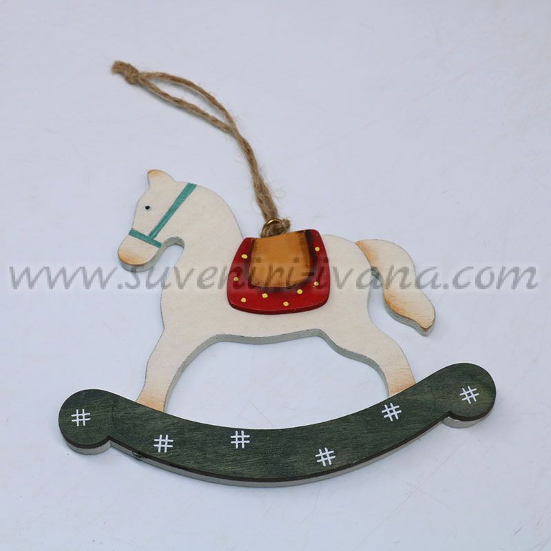 Дървена коледна украса люлеещо се конче с канапче за закачане