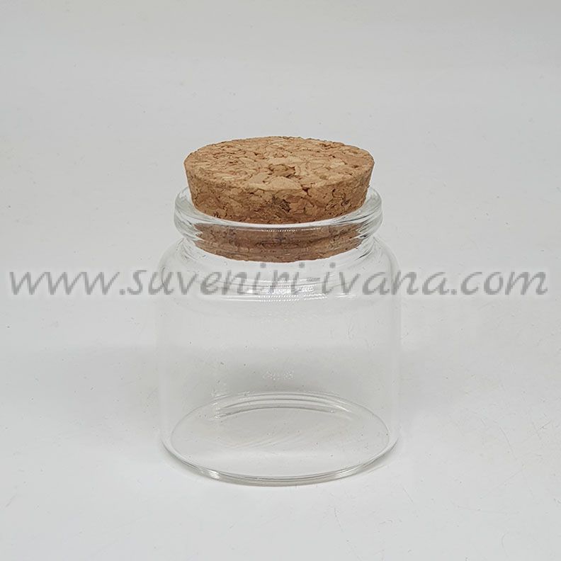 Практично и естетично стъклено шишенце с коркова тапа, с вместимост 60 мл. Изработено от прозрачно стъкло, което позволява лесна видимост на съдържанието. Корковата тапа осигурява добро затваряне и придава натурален и декоративен вид.