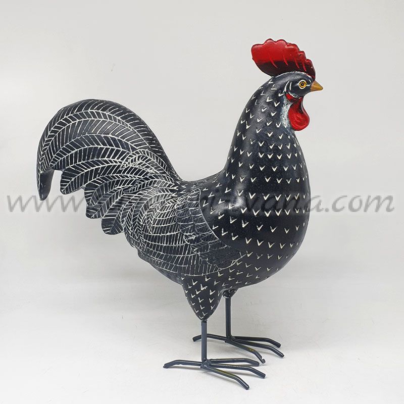 Декоративният петел от полирезин с метални крака е стилен акцент за дома, офиса или търговски пространства. Фигурата е изработена от полирезин с детайлна текстура и ръчно изрисуван ефект, който придава характер и автентичност.
