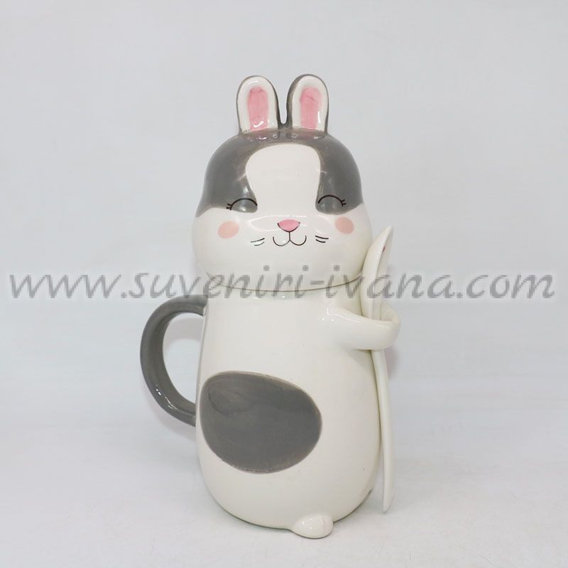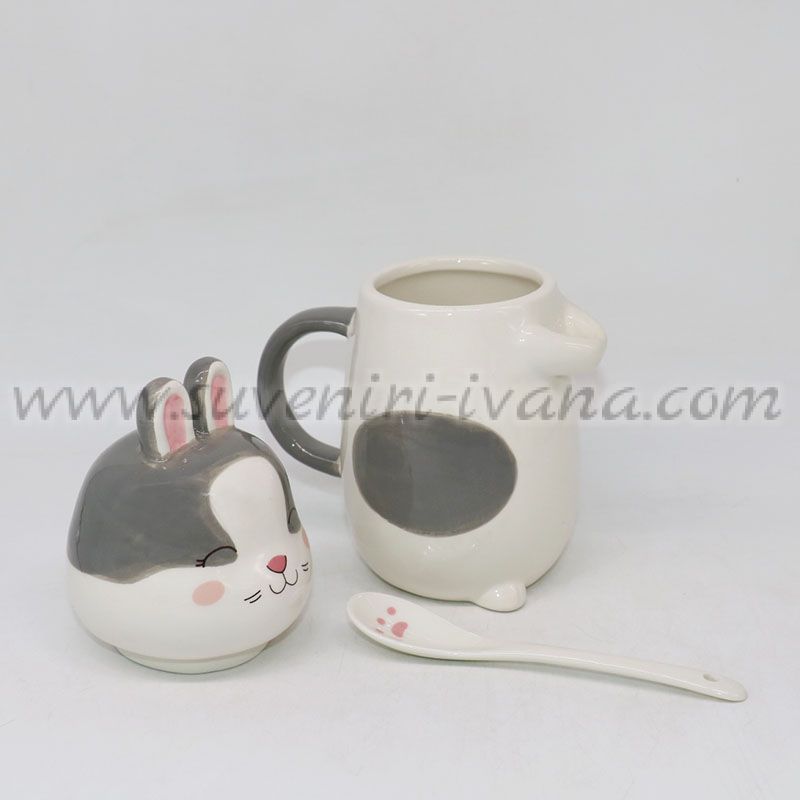 Очарователна керамична чаша във формата на зайче с капак и лъжичка – перфектен подарък както за деца, така и за всички любители на животни.