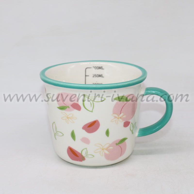 Свежа керамична чаша с праскови, тюркоазена дръжка и вътрешна мерителна скала до 300 мл.