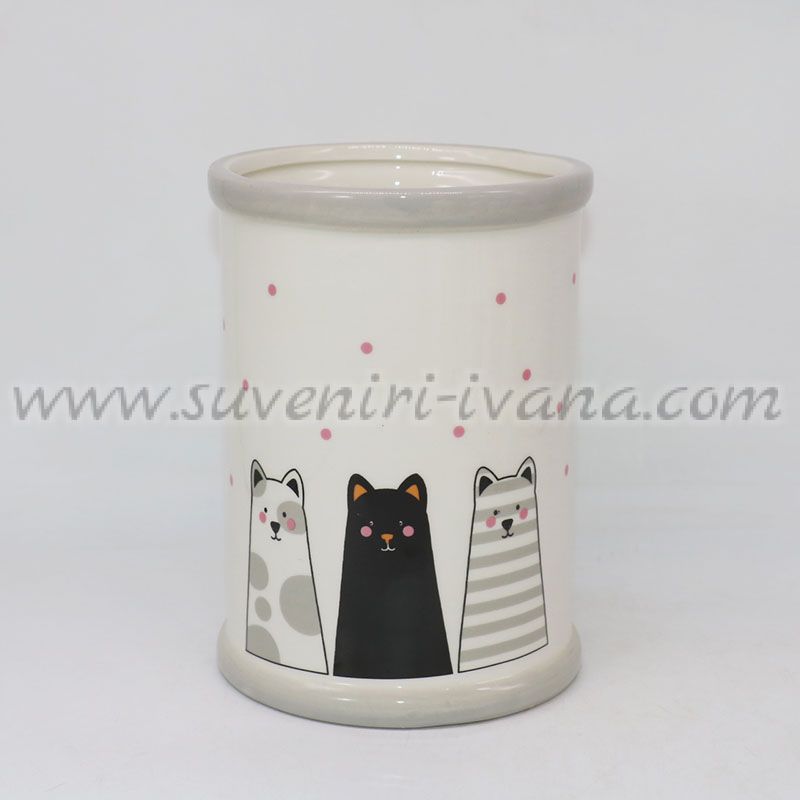 Керамичeн съд за прибори или декорация с котки