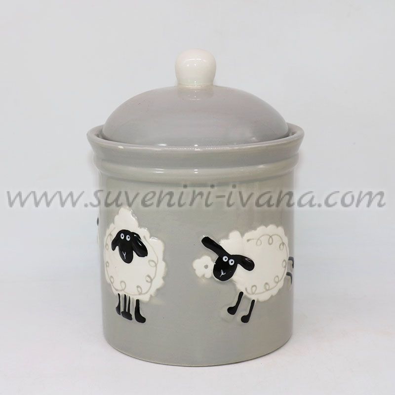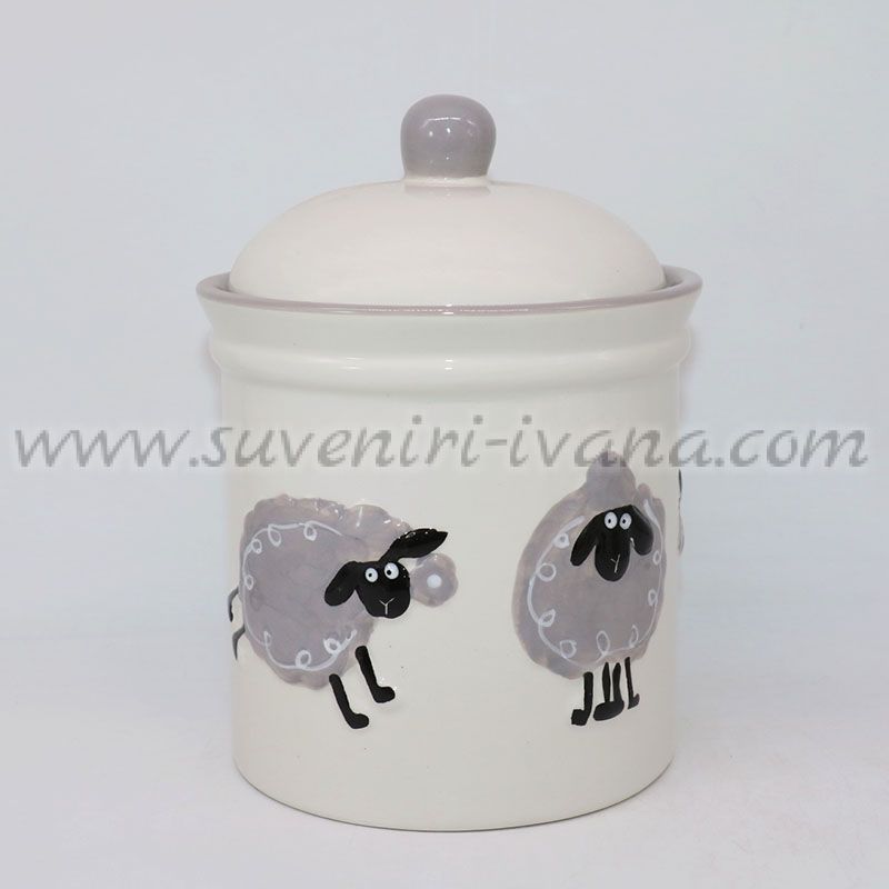 Керамичен буркан с капак и декорация овце