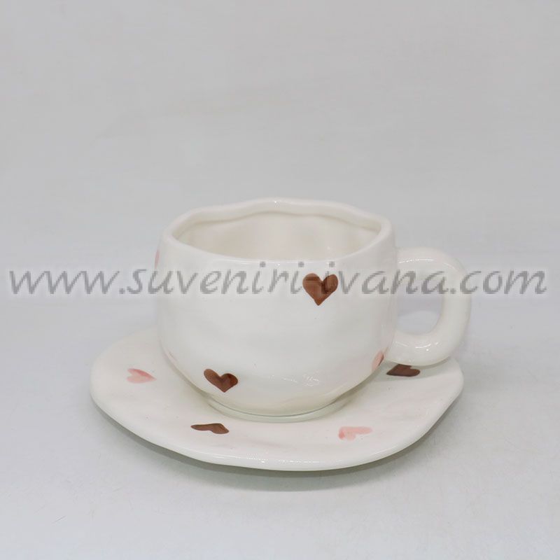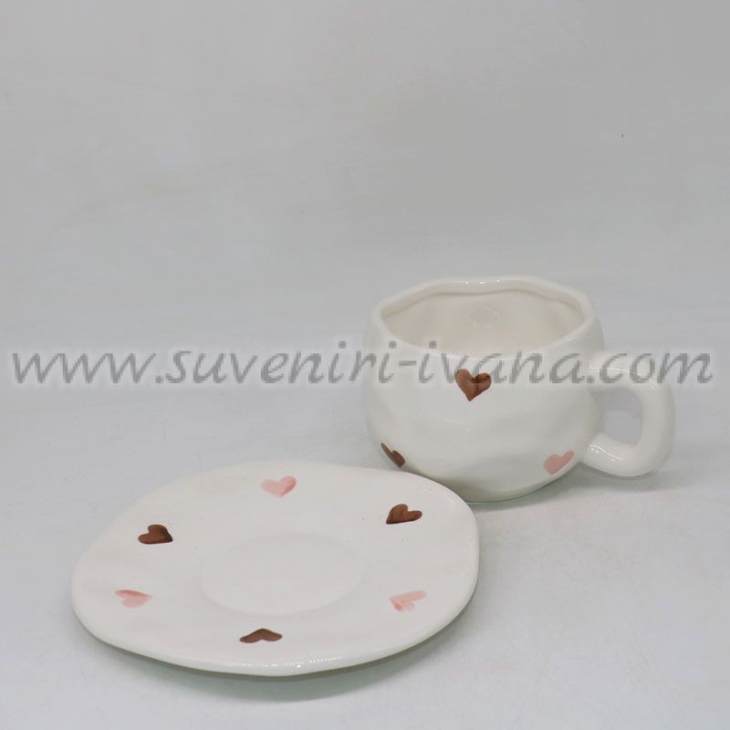Керамичен комплект чашка с чинийка на сърца