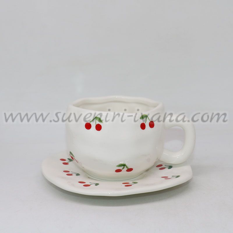 Керамичен комплект чашка с чинийка на черешки