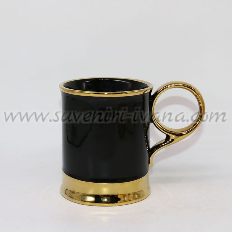 Стилна керамична чаша в класически черен цвят със златиста основа и дръжка – изискан акцент за всяка маса. Вместимост около 400 мл.