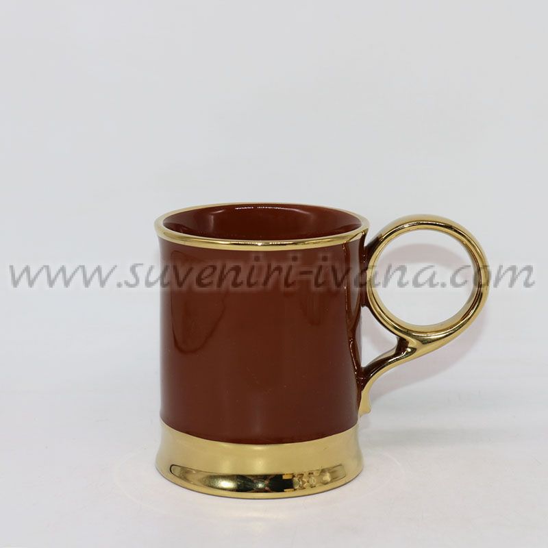 Стилна керамична чаша в наситен кафяв цвят със златиста основа и дръжка – изискан акцент за всяка маса. Вместимост около 400 мл.