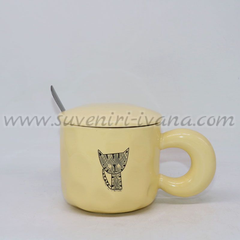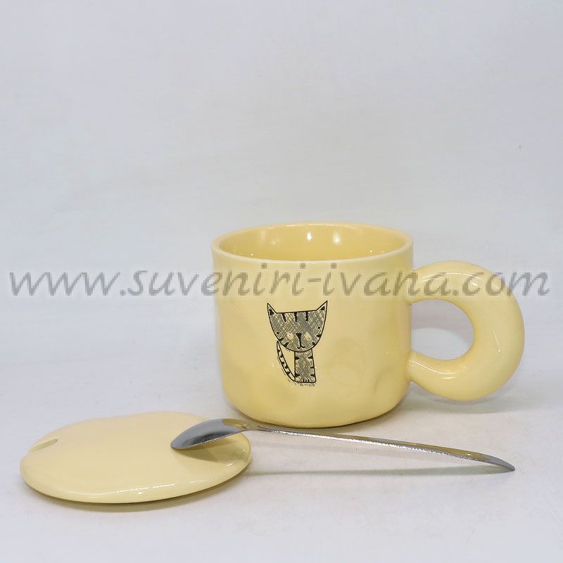 Керамична чаша с капак и лъжичка с коте, модел три