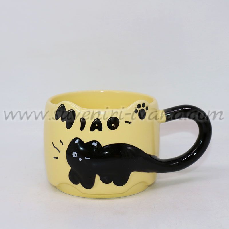 Керамична чаша с 3D коте и черна дръжка, модел две