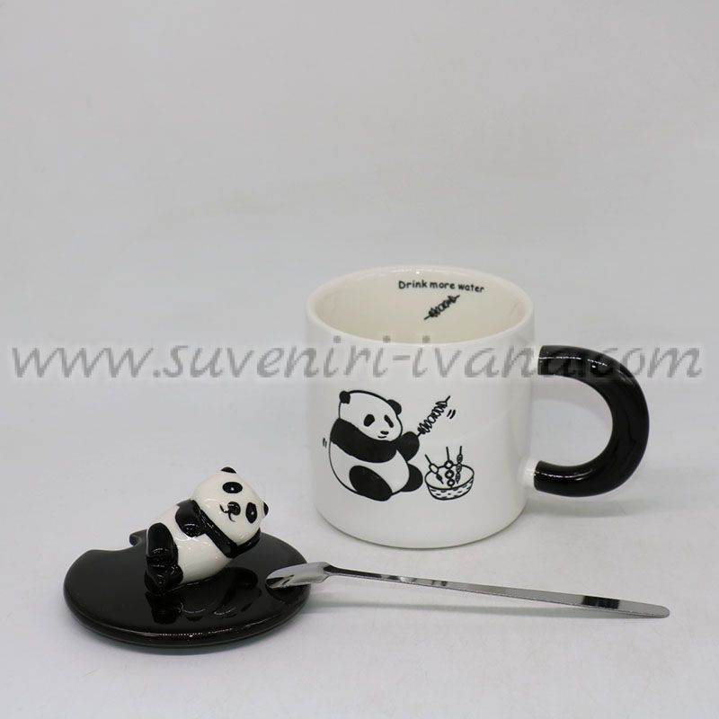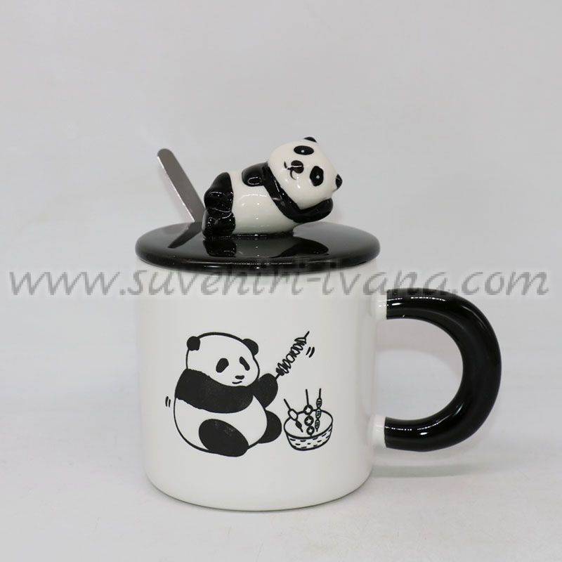 Керамична чаша с капак и лъжичка с 3D панда, модел две