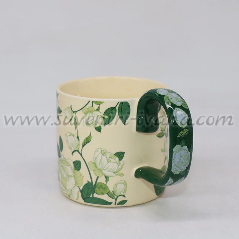 Керамична чаша с флорален принт и декорирана дръжка, модел три
