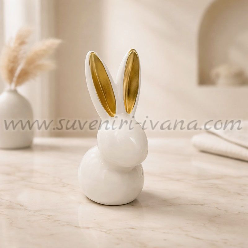 Декоративно керамично зайче със златисти ушички, модел две