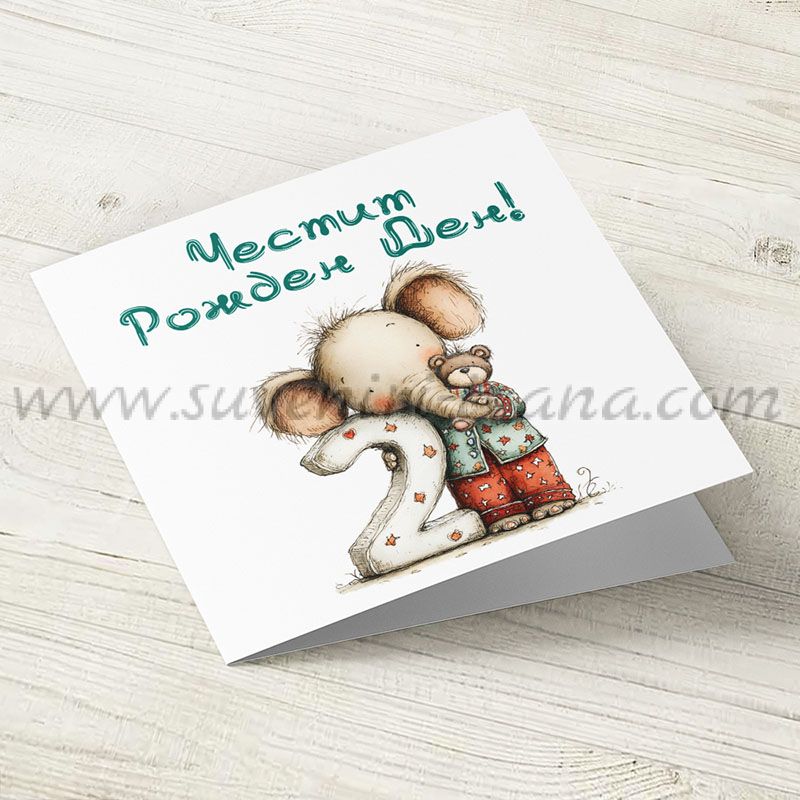 Тази очарователна поздравителна картичка е създадена специално за втория рожден ден – един от най-вълнуващите моменти за всяко семейство.