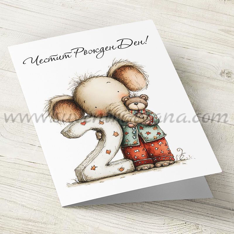 Тази очарователна поздравителна картичка е създадена специално за втория рожден ден – един от най-вълнуващите моменти за всяко семейство.