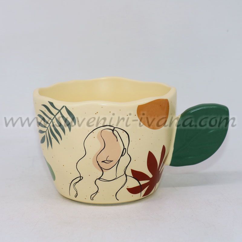 Керамична чаша с артистичен дизайн и дръжка листо – декоративна чаша за кафе и чай