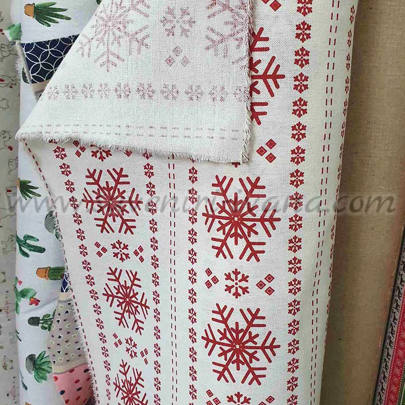 Платът е чудесен избор за създаване на уютна и празнична атмосфера у дома. Материя: лен/памук. Не е препоръчително да се пере на висока температура. Цената е за един линеен метър.