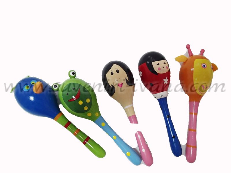 Дървен маракас с ръчна декорация. Приблизителни размери 21,0 х 6,0 см. Предлагат се различни модели.