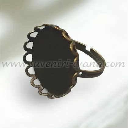 Кръгла основа за пръстени изработена от метал в цвят старо злато. Металната основа е подходяща за кабошони с диаметър 20 мм. Пръстенът се регулира.